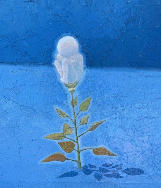 "Komposition" Oliemaleri på lærred i grå naturramme. Maleriet er udstillet på kunstnernes efterårs udstilling på charlottenborg.