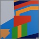 Stor flot konkret komposition, malet på plade. Kvalitets indramning i gråmalet naturtræ. Galleri pris i 1992 var 35000.-