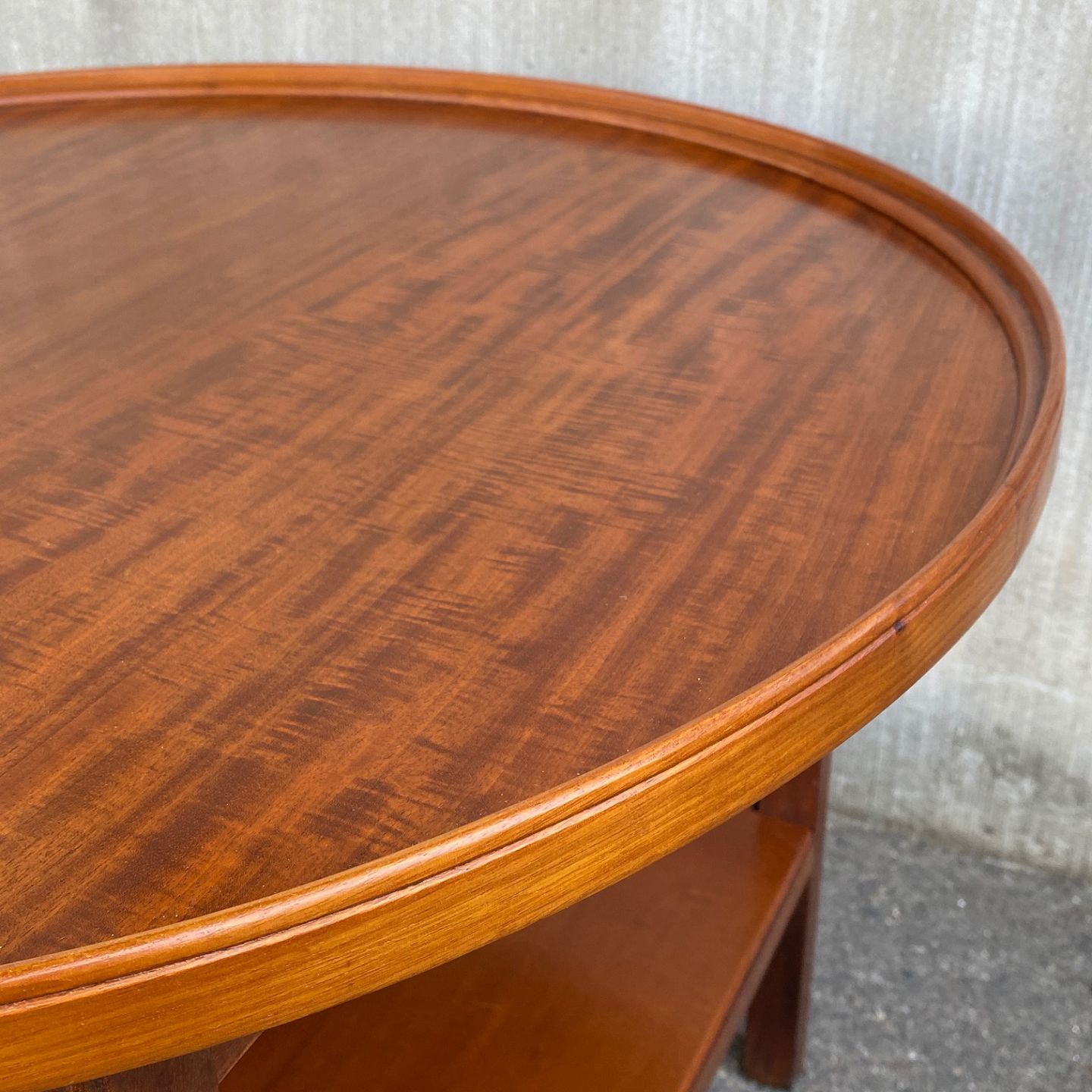 Kaare Klint sofabord, udført i massiv Cuba-mahogni hos Rud. Rasmussen. Bordet er en tidlig model der er yderst sjælden. Der er detaljer i underkanten af bordet og måden hylden er understøttet der er helt forskellig fra normalt.
