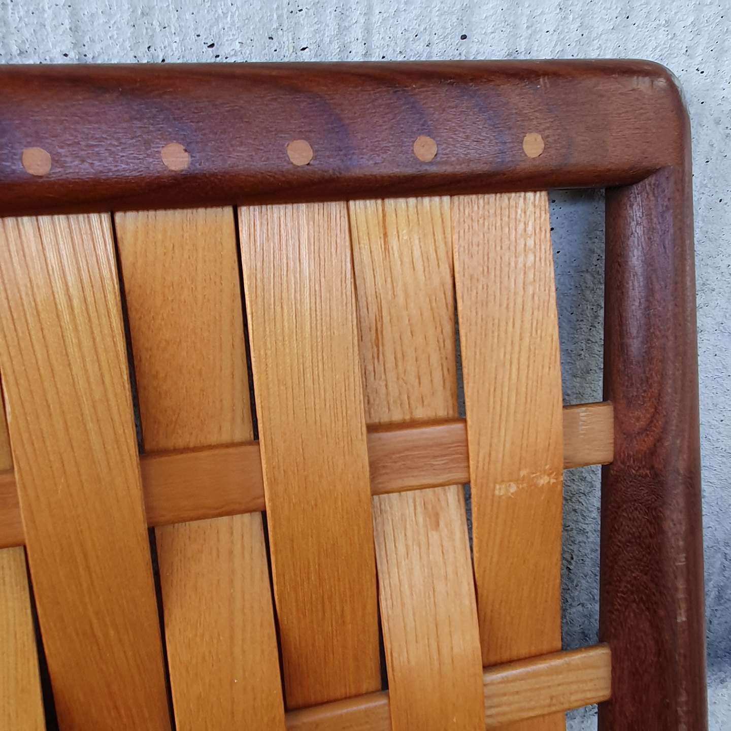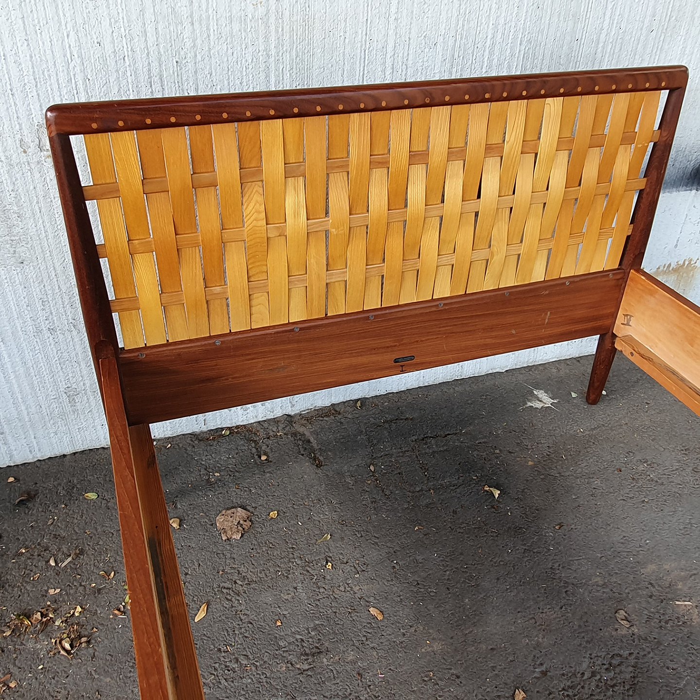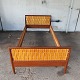 teaktræs seng med spånflettet gavle fra Illumsbolighus. Mærkat herfra.