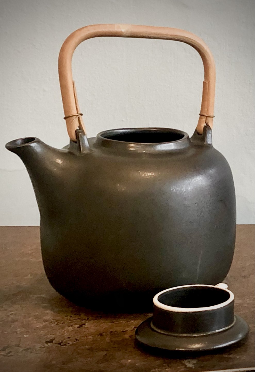 Knabstrup Thepot with black burnt glaze. Stamped with knabstrup logo and original paper mark.