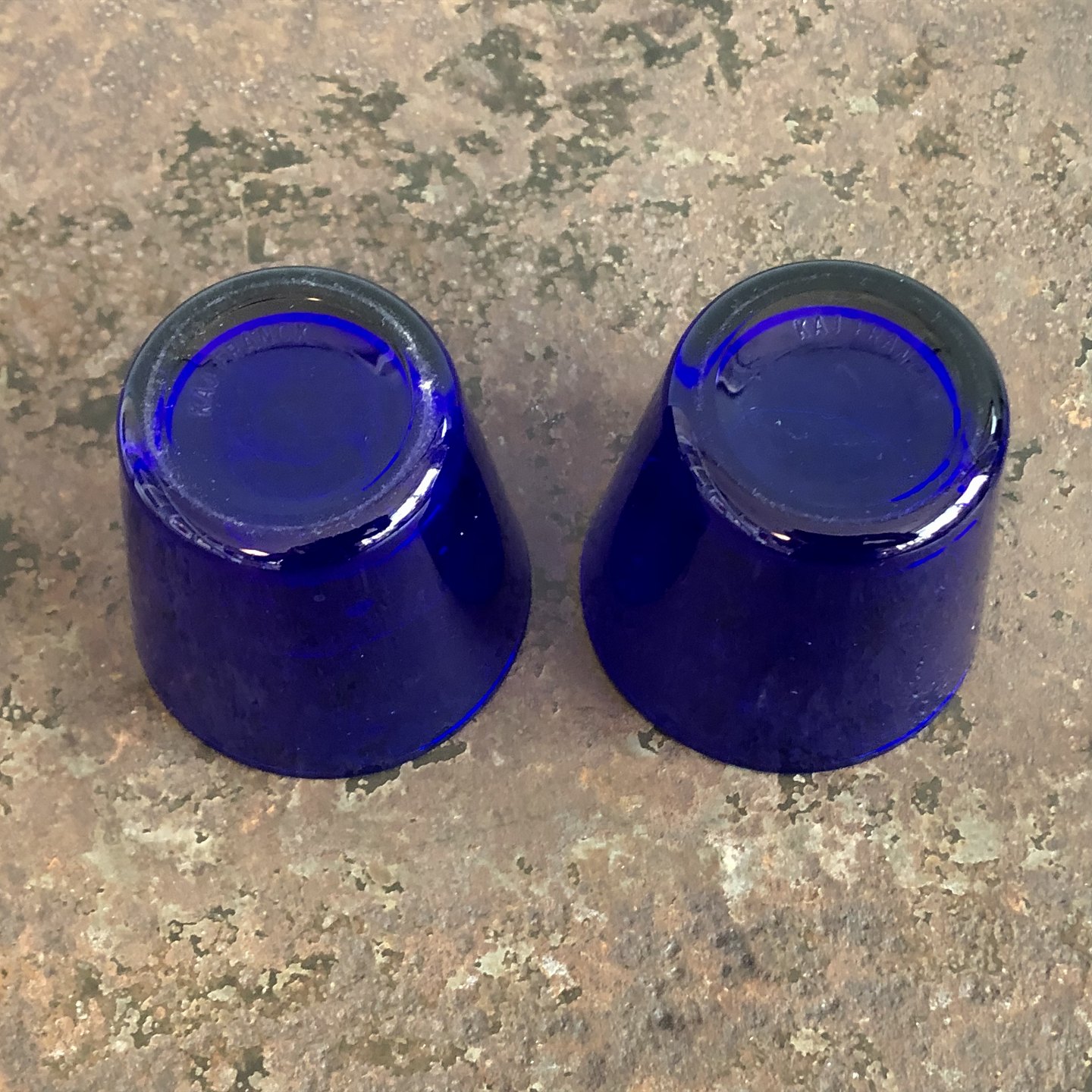 Kaj Franck. 2 drikkeglas af støbt blåt glas. Signeret i bunden.