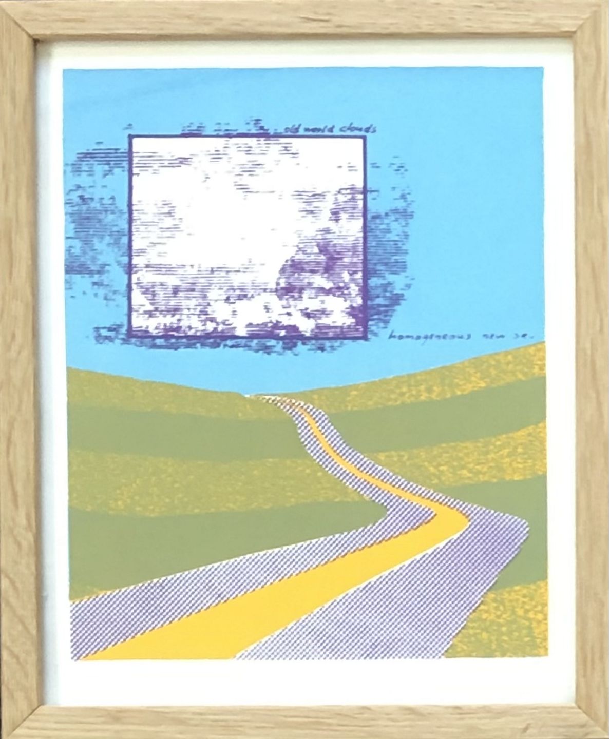 Litografi i lille egetræsramme. David Hockney stil usigneret