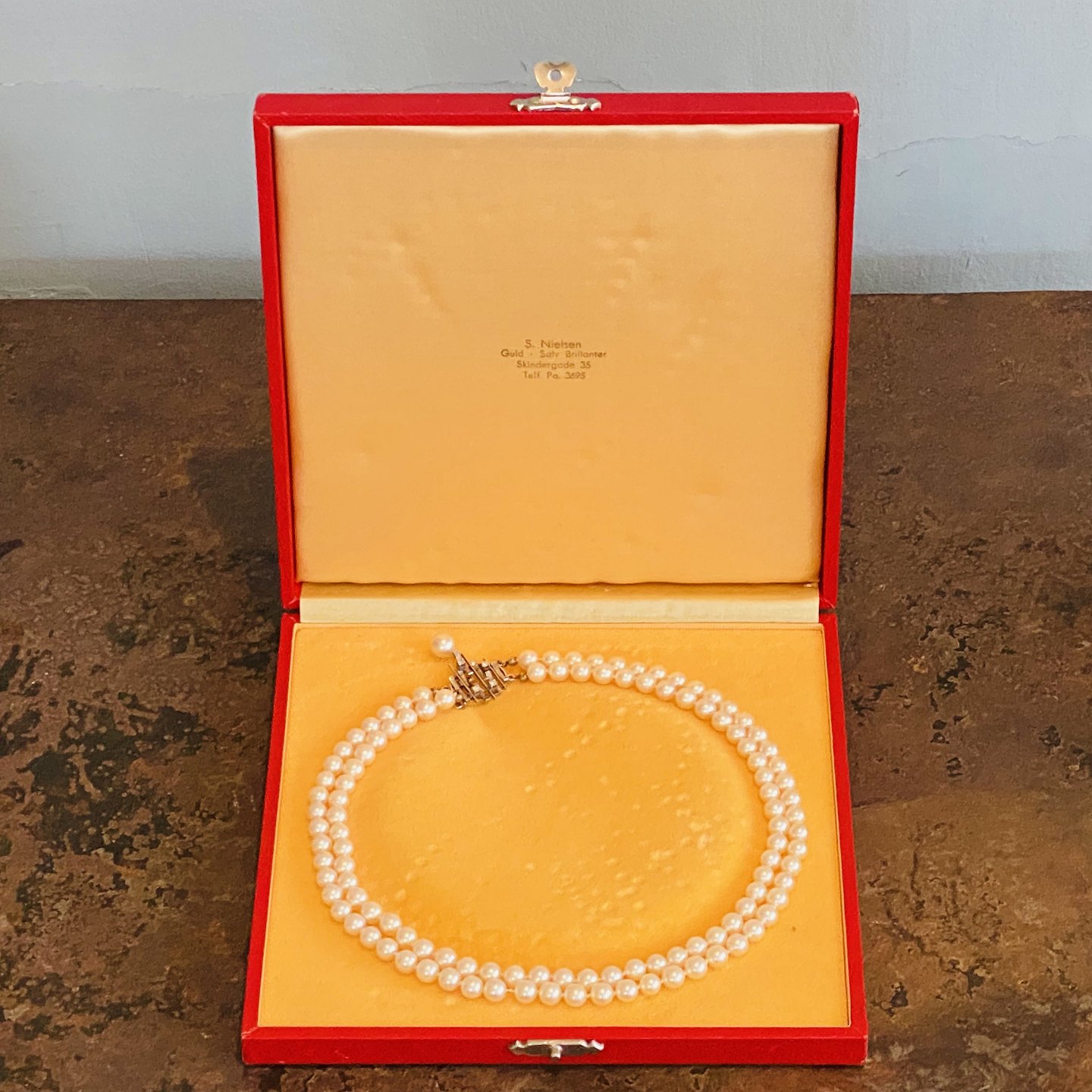 Kæden ligger i original æske fra S. Nielsen Guld, Sølv & briliander. Skindergade 35. Pa. 3695