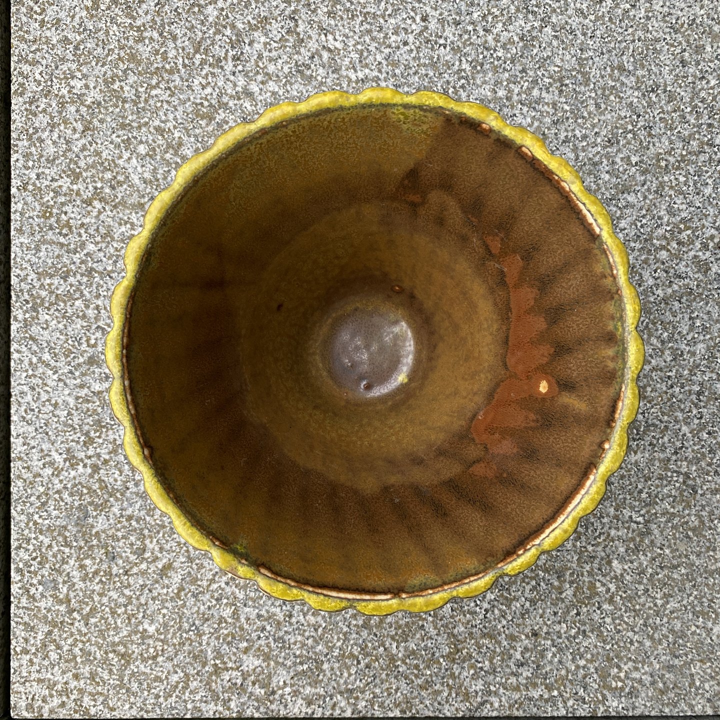 Vase i stentøj med kanneleret og snoet, konisk korpus med solfatare-glasur. Fin stand.