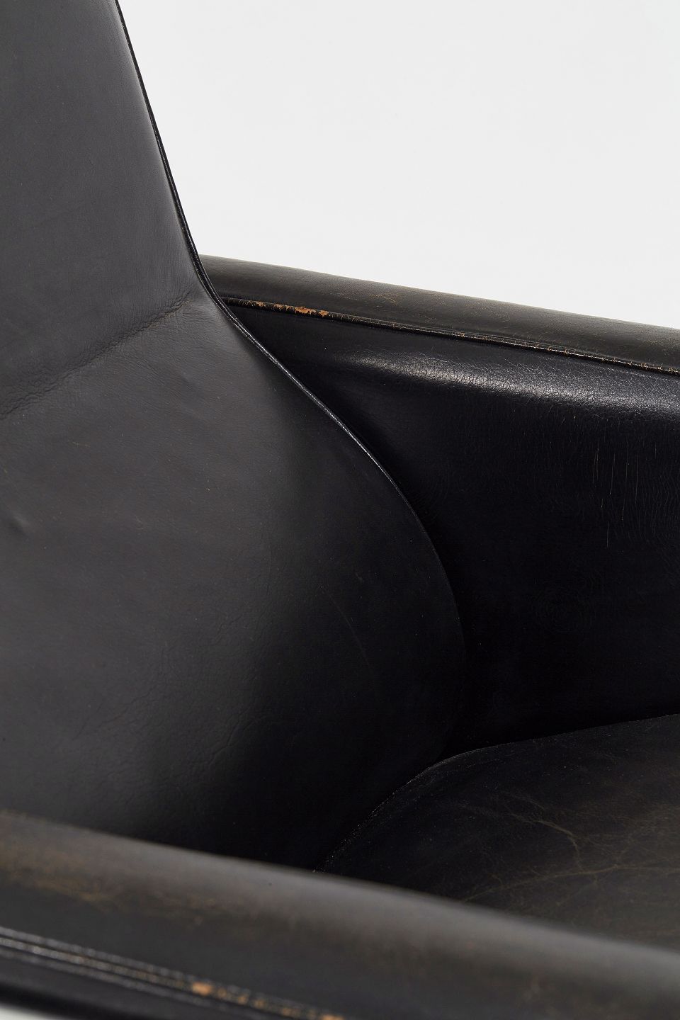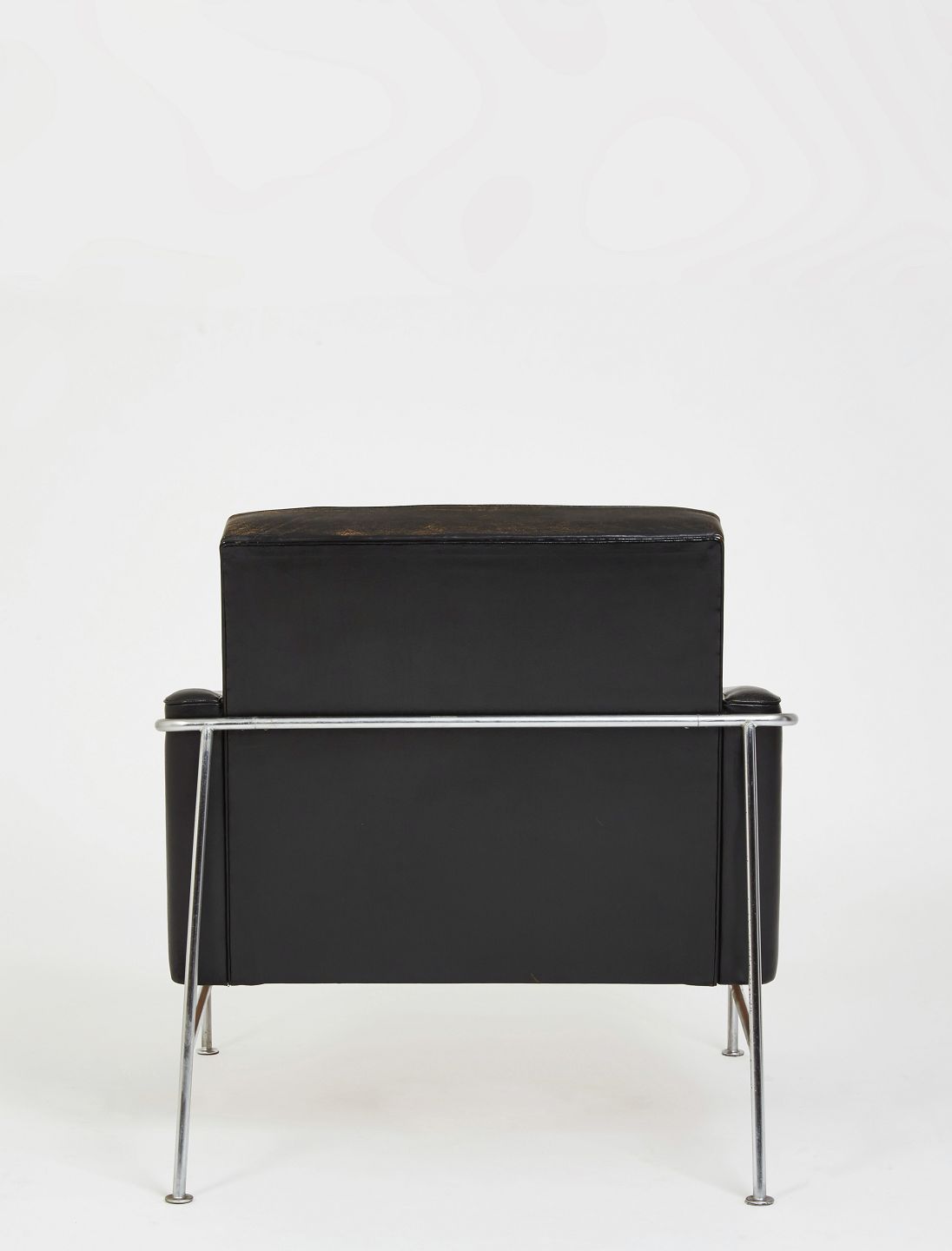 Arne Jacobsen. Lufthavnsstol i originalt sort patineret læder, stel af forkromet stål.Udført i tresserne.