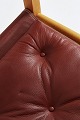 Kaare Klint. Safaristol med stel af asketræ. Sæde, ryg, armlæn og knapsyet hynde betrukket med rødbrun læder.