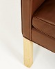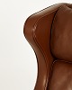 Øreklapstol med ben af lyst egetræ.Hynder med dunfyld og med originalt betræk i brunt læder. Velholdt stand med brugsspor.