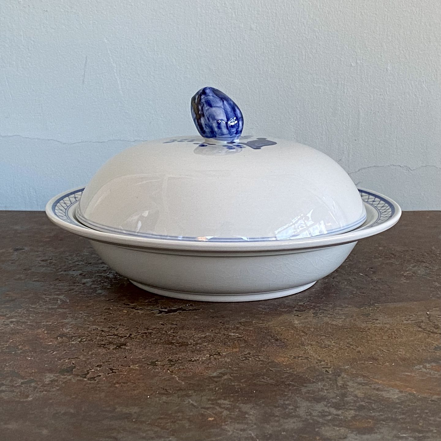 Itemnumber: 527268Aluminia faience Tranquibar sink no. 11/1623. Ų 21 cm. H. 4.5 cm. inc lid11 cm. Appears neat and without cracks. Designed by Christian Joachim in 1914.