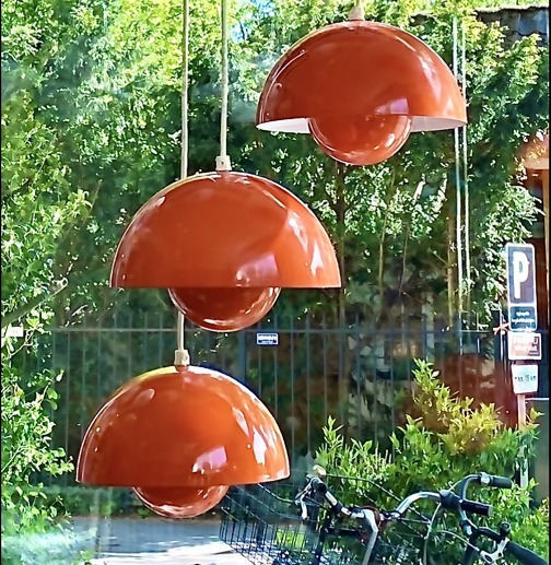 Originale Flowerpots VP1 pendler af jern med orangerød emalje.