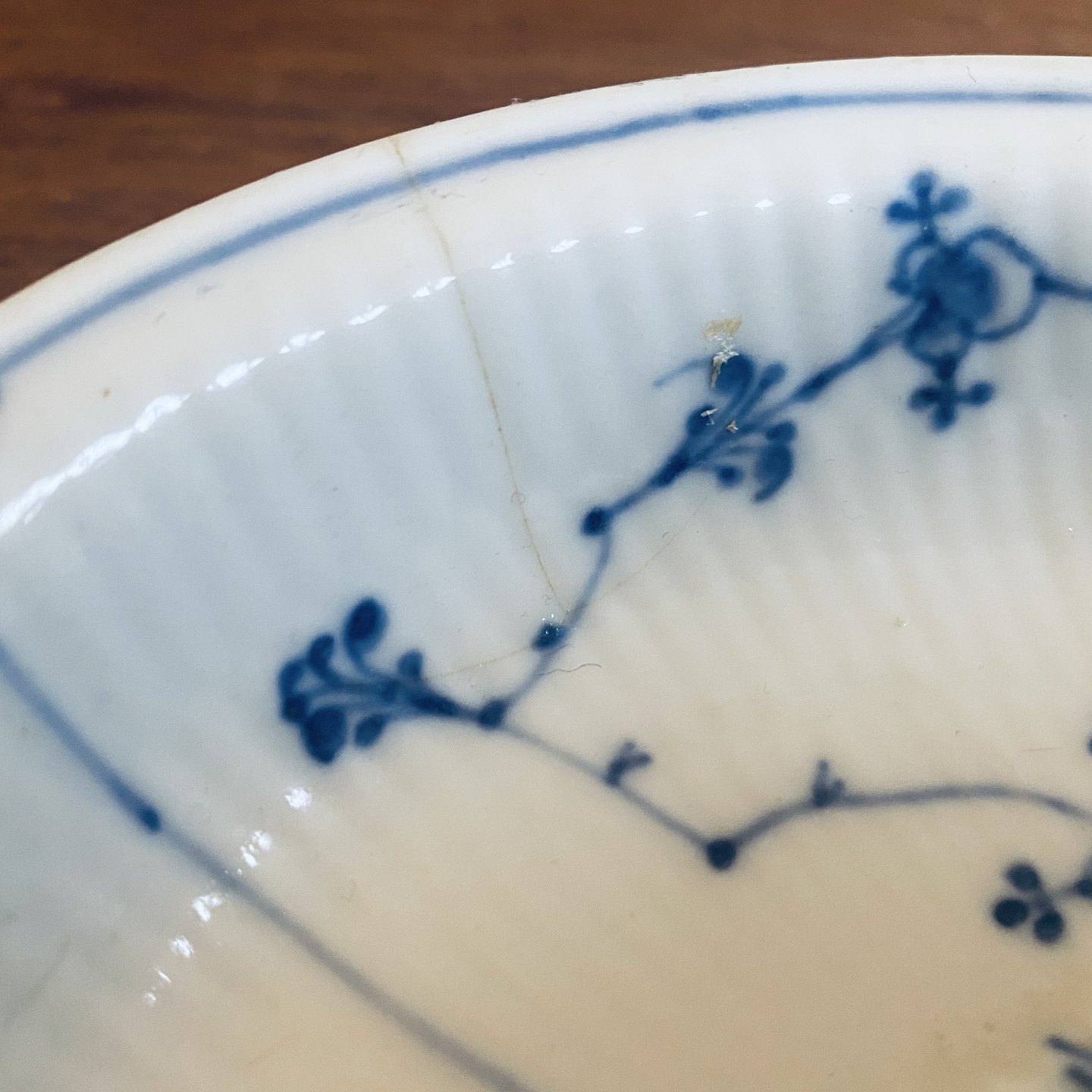 Royal Copenhagen/Kgl. Oval blue fluting fluted saucer. This was produced from around 1840 to 1850. Dimensions: 22.8 x 17.5 cm. 1st grade, but with a hard edge (See photo)