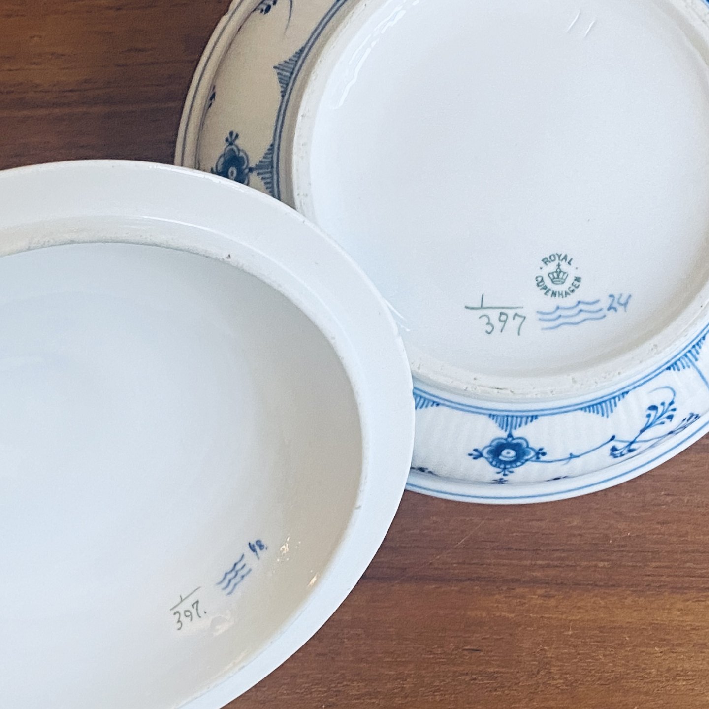 Itemnumber: 603583Royal Copenhagen/Kgl. Blue Fluted Fluted, Tureen with lid. Decoration number 1/397. This was produced from 1898-1923. H. 16 cm. Diameter 24 cm. 1st grade. Appears with small chip on lid edge (See photo)