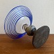 Itemnumber: 603894Sugar bowl of clear glass with a blue spiral around it. circa 1860. Painted stem and foot. Half of the stem is made of glass, the last part of the stem and foot is made of wood. H. 9.7 cm. Diameter 11.2 cm.