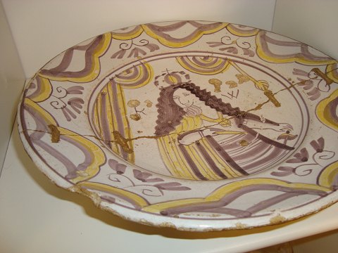 Antik lerfad fra Holland omkring år 1770 - 1800. d. 30 cm