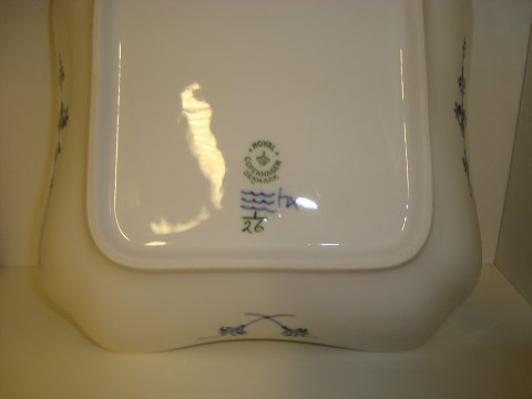 Firkantet Musselmalet Riflet kartoffelskål i fin stand, L 21,5 cm