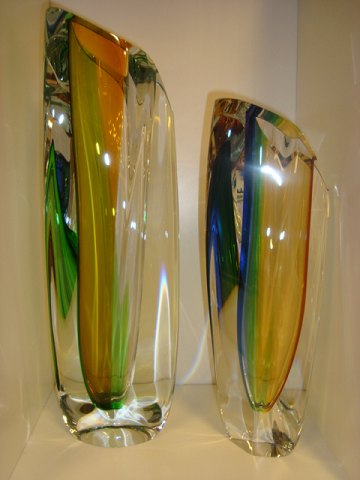 To store vaser i kunstglas fra Kosta Boda designet af Göran Wärff.