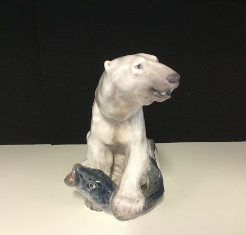 Dahl Jensen Figur 1272 Isbjørn med Torsk L 18 cm, H 15 cm, 1. sort.