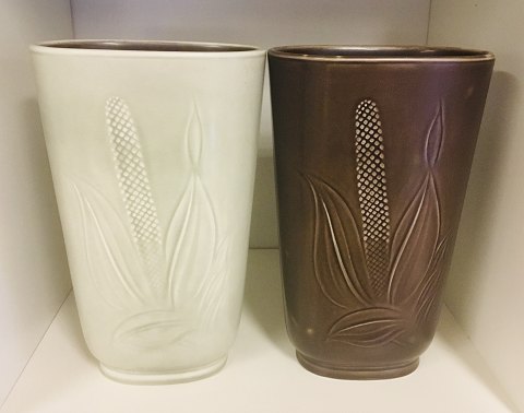 Aluminia Kunstfajance, 2 stk. vaser i Solbjergserien, 22 cm høje, nr. 1712, designet af Nils Thorson 1935