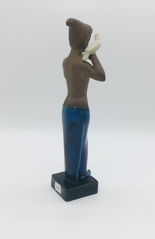 Royal Copenhagen, Johannes Hedegaard Teracotta figur med duer. I hel og fin stand.