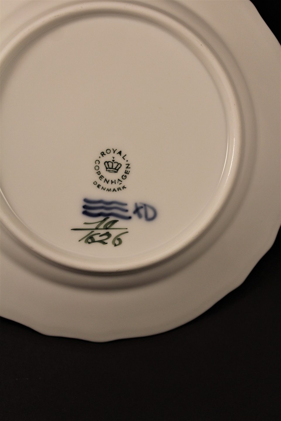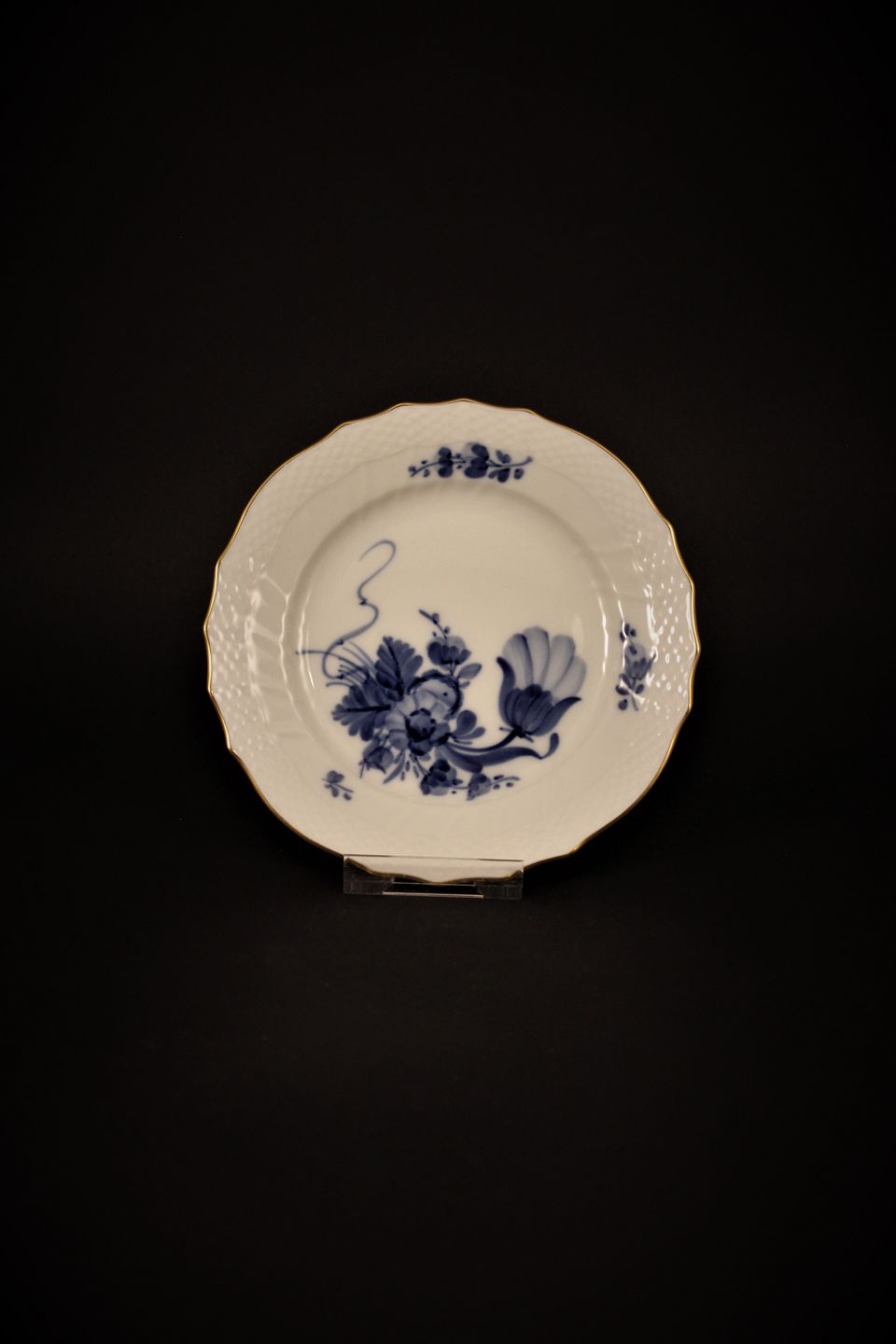 Royal Copenhagen Blå Blomst Svejfet dessert tallerken med guldkant. Dia.:15,5cm. 1.sortering.