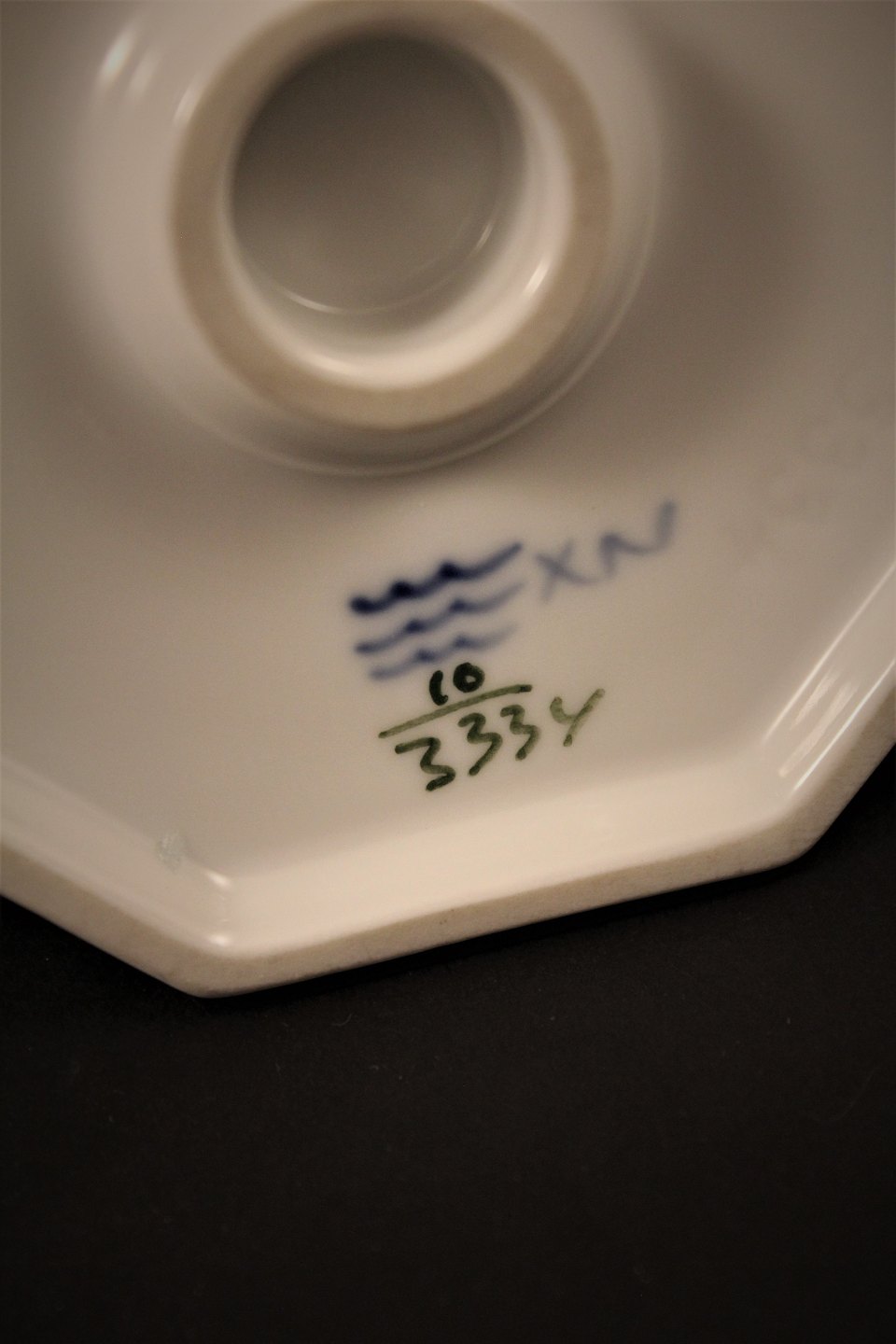 Royal Copenhagen, a pair of Blue Flower, Angled candlesticks with gold border.