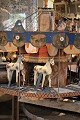 Dekorativ 1800 tals tivoli karrusel i bemalet træ , metal og stof med blandt andet fine udskåret hvide heste....
