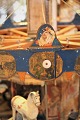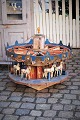 Dekorativ 1800 tals tivoli karrusel i bemalet træ , metal og stof med blandt andet fine udskåret hvide heste.