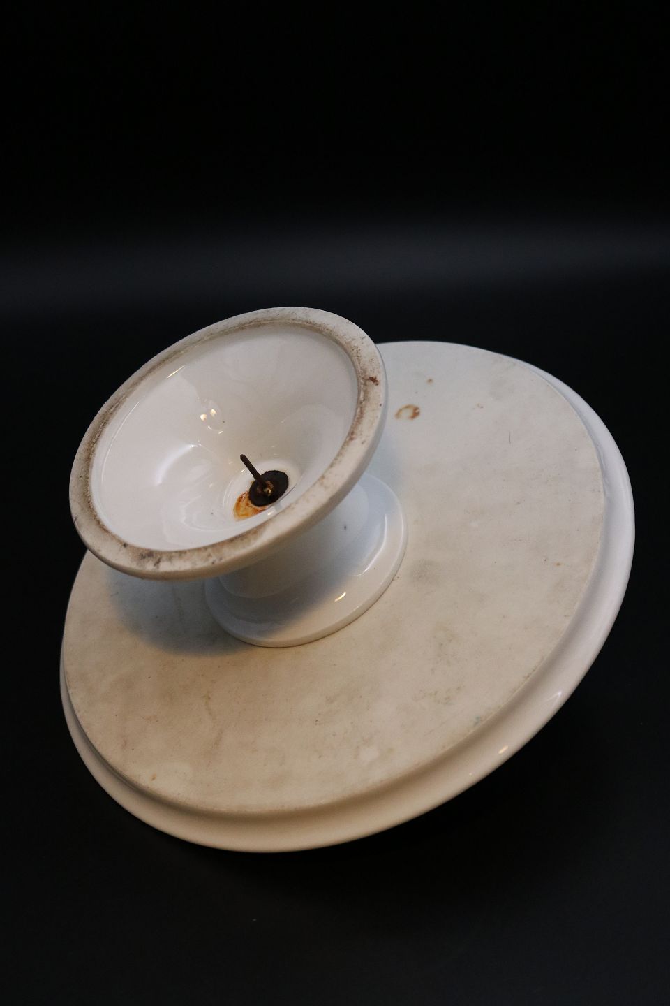 Old cake top in white porcelain with a small extra top in the middle.