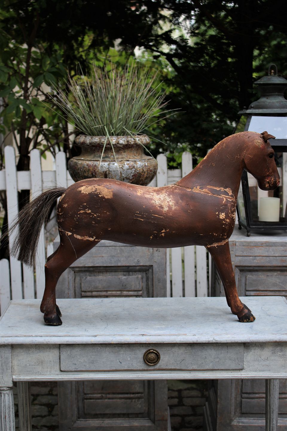 Swedish 19th century horse in carved wood with original fine brown color and with a super fine patina.