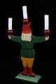 Old Swedish Santa Claus candlestick in carved wood from the 50s, painted with a fine patina and with space for 3 candles.