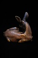 Saxbo ceramic figure of a reclining deer with fine brown glaze.