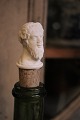19th century wine stopper from Royal Copenhagen in the shape of a man's bust in biscuit with cork stopper. H:7,5 cm. (bust H: 4cm.)