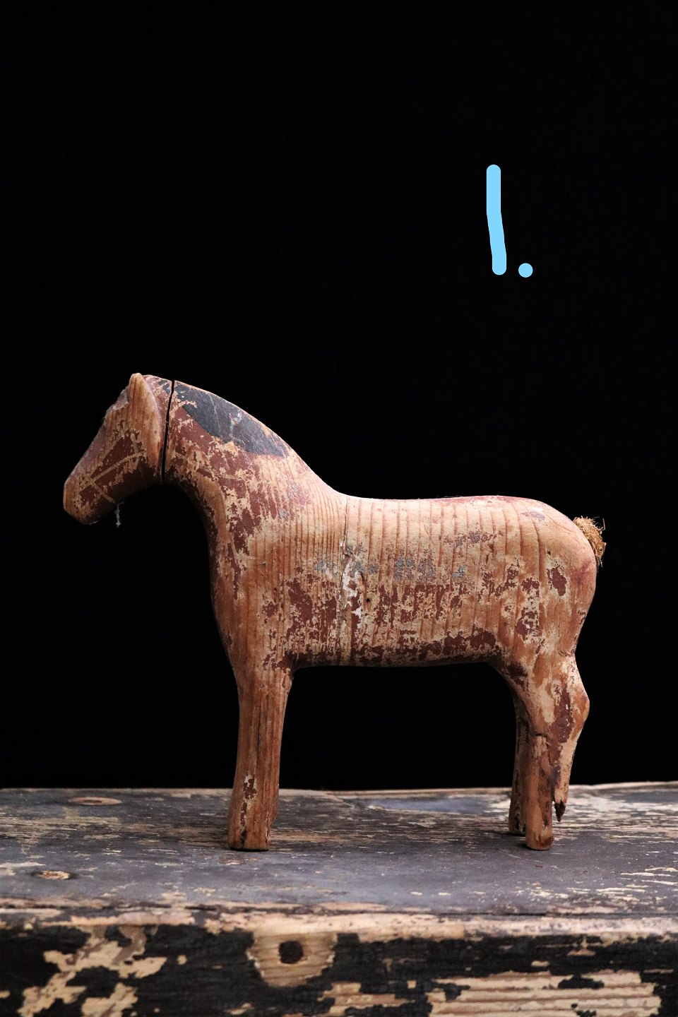 1) Horse: H: 16.5cm. L: 19cm. - PRICE: DKK 400. - SOLD !