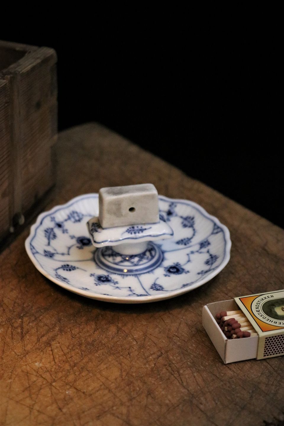 Royal Copenhagen Musselmalet Riflet askebægre med tændstik holder.