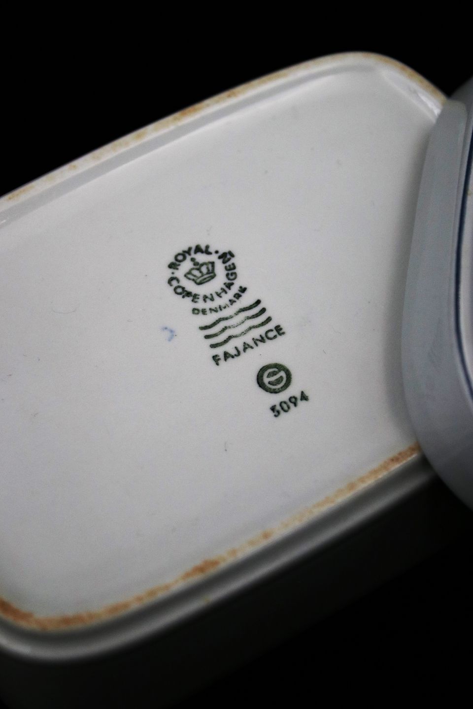 Royal Copenhagen - Aluminia Blåkant fajance smørkrukke med låg.