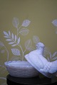 Old egg hen in white glass. H: 12.5cm. L: 16cm.