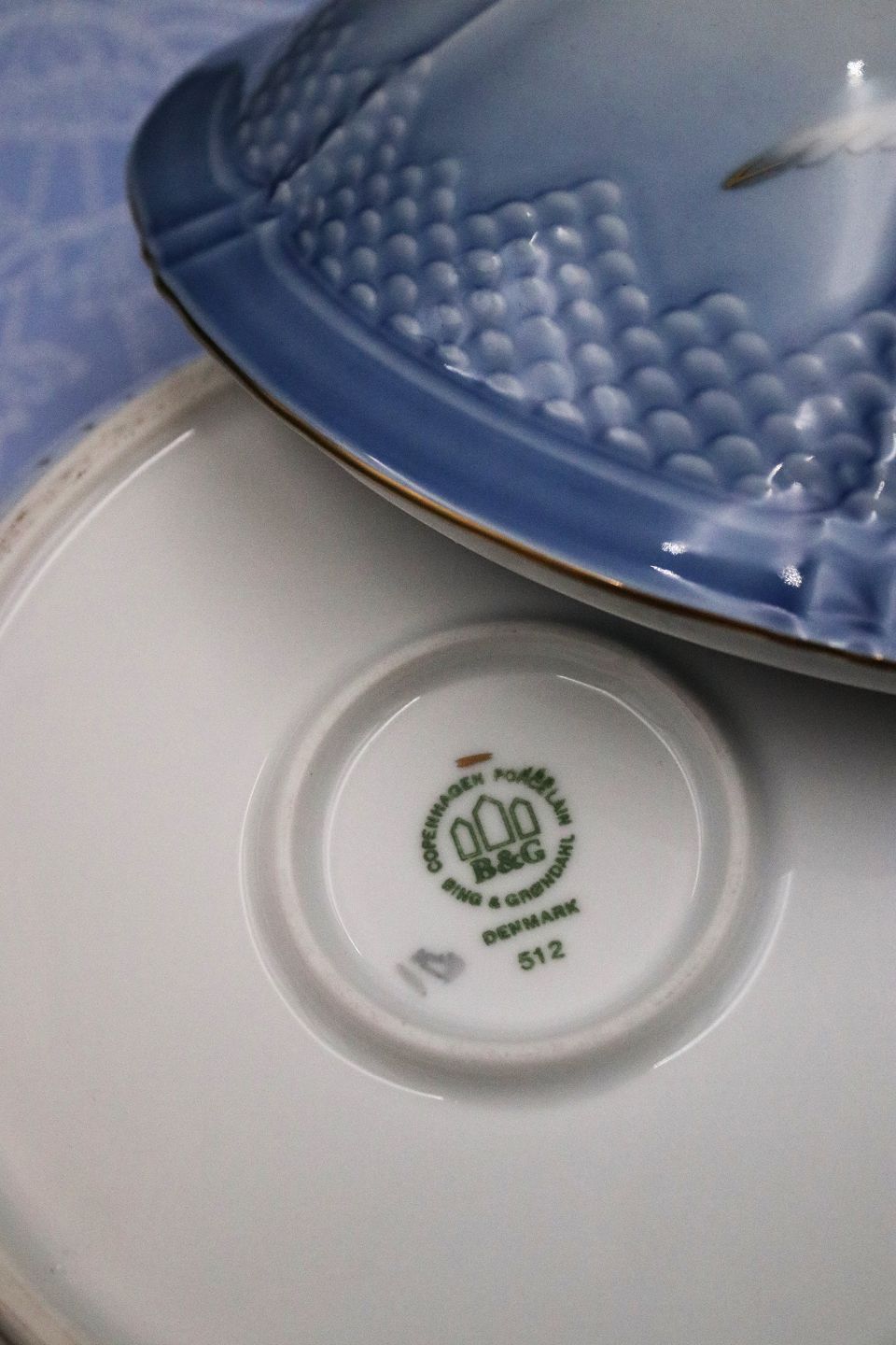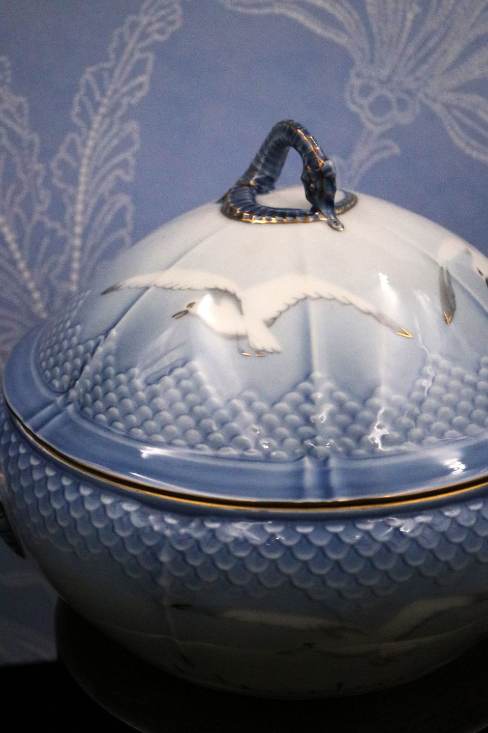 Bing & Grøndahl låg terrin med hanke i Måge spisestellet med guldkant.