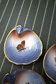 4 fine , gamle østersskåle fra Dahl Jensen med motiver af flyvende insekter og guldkant...