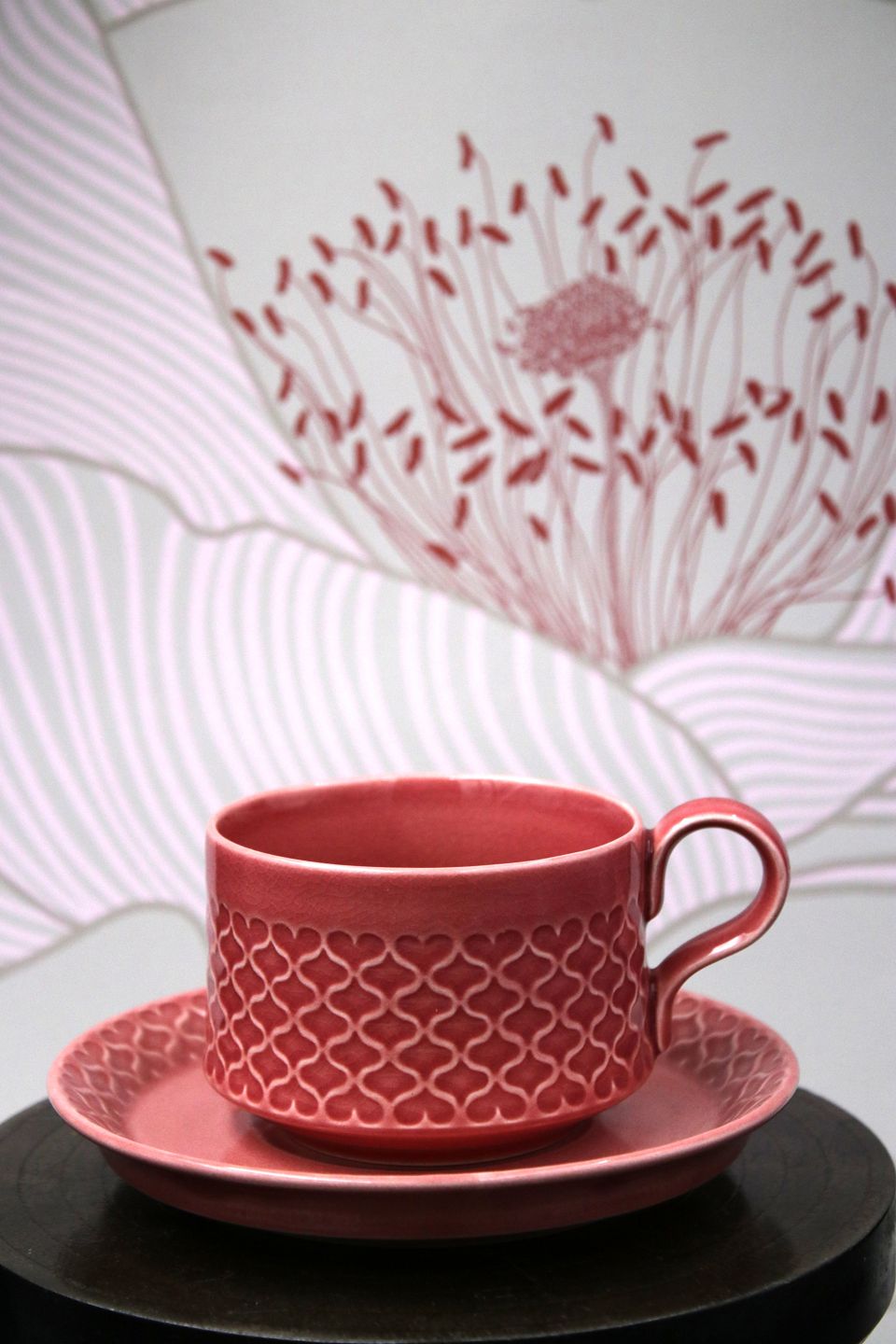 Bing & Grøndahl Kronjyden - Pink Cordial kaffekop med undertallerken.