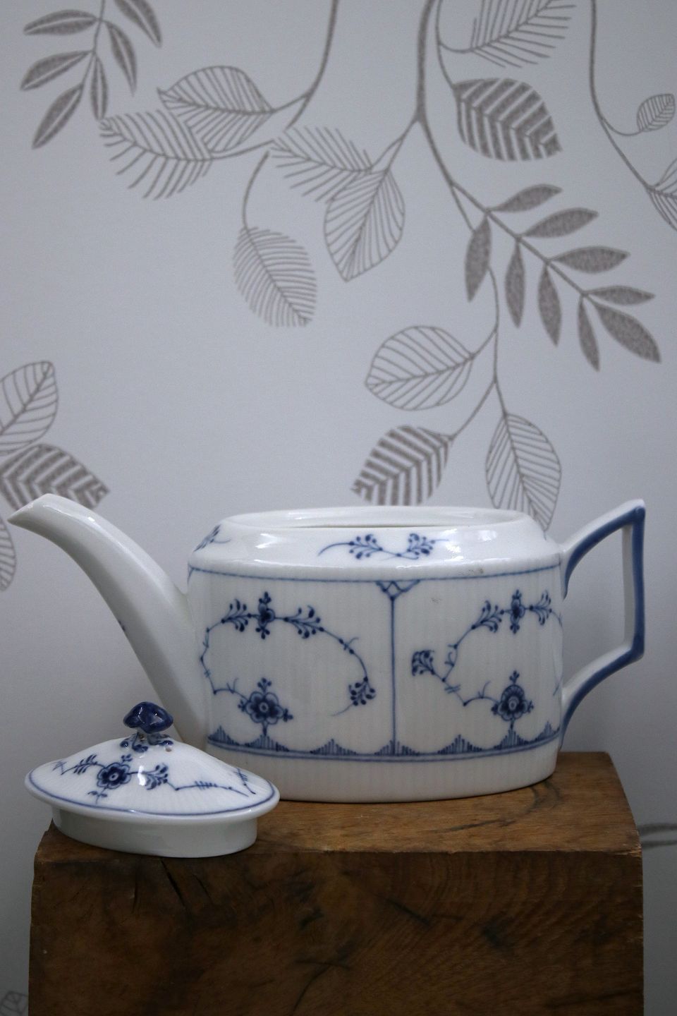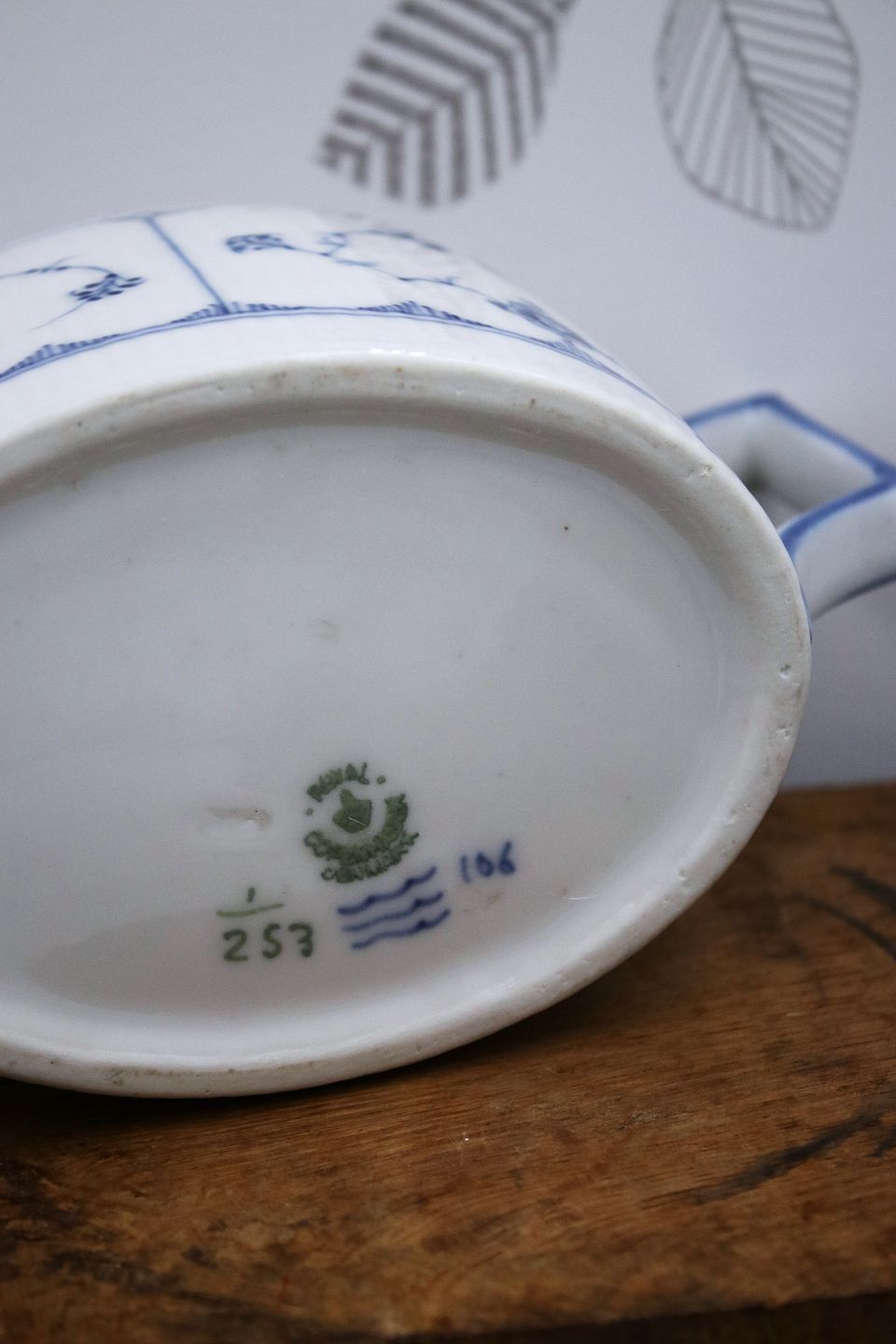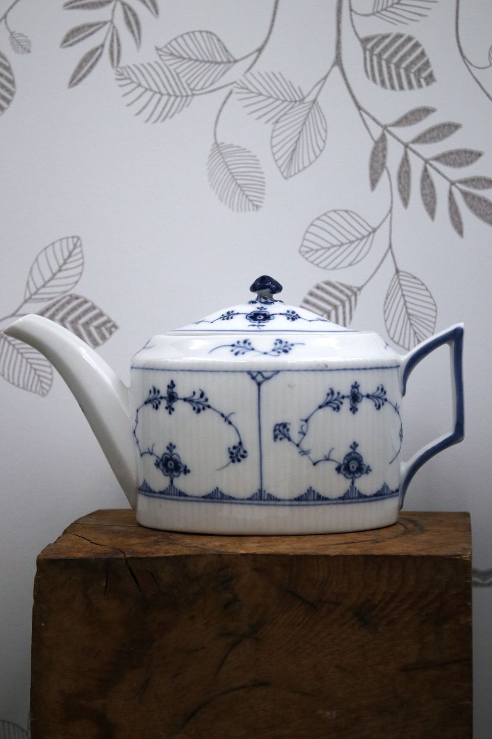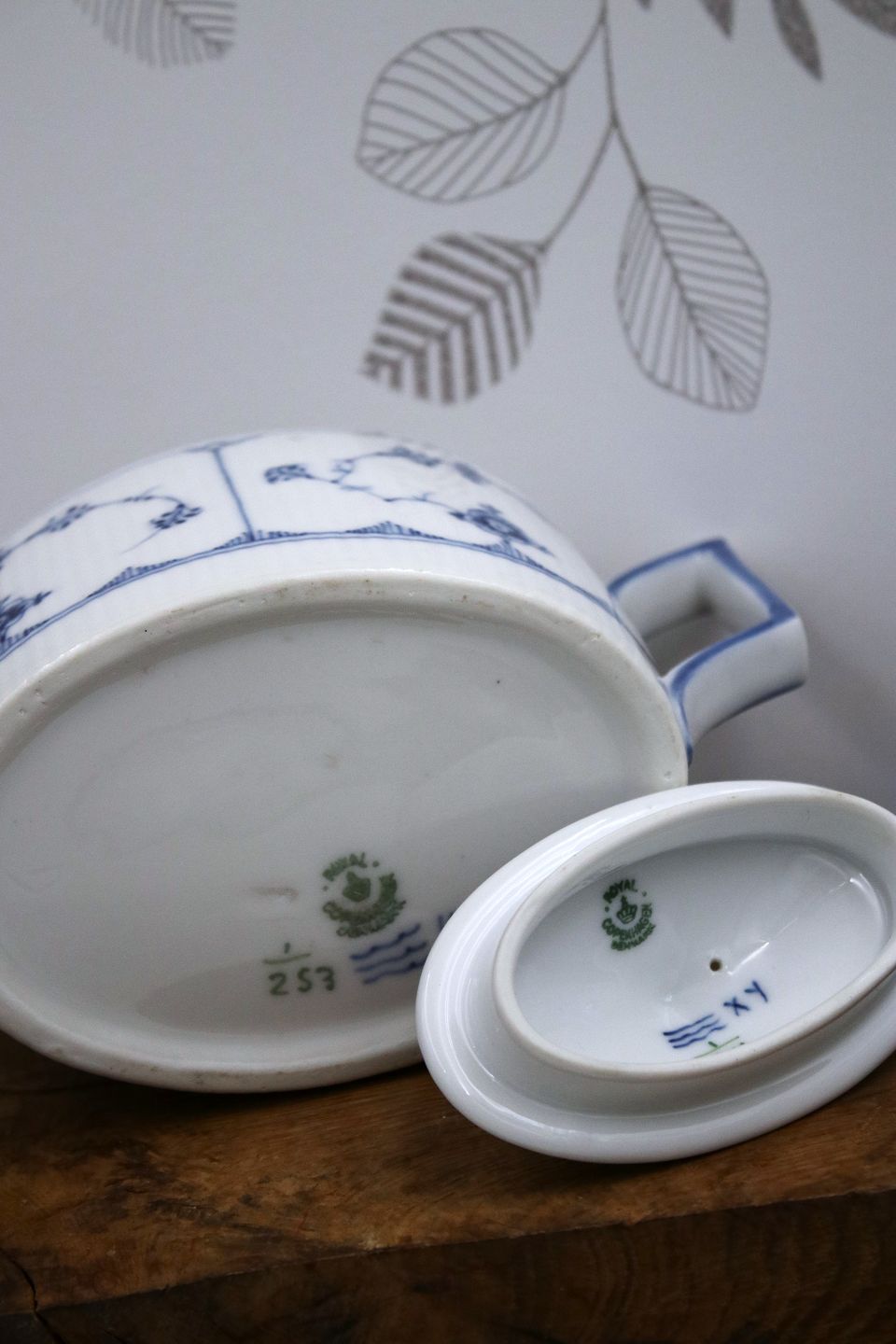 Sjælden Royal Copenhagen Musselmalet Riflet oval tekande fra 1923-28.