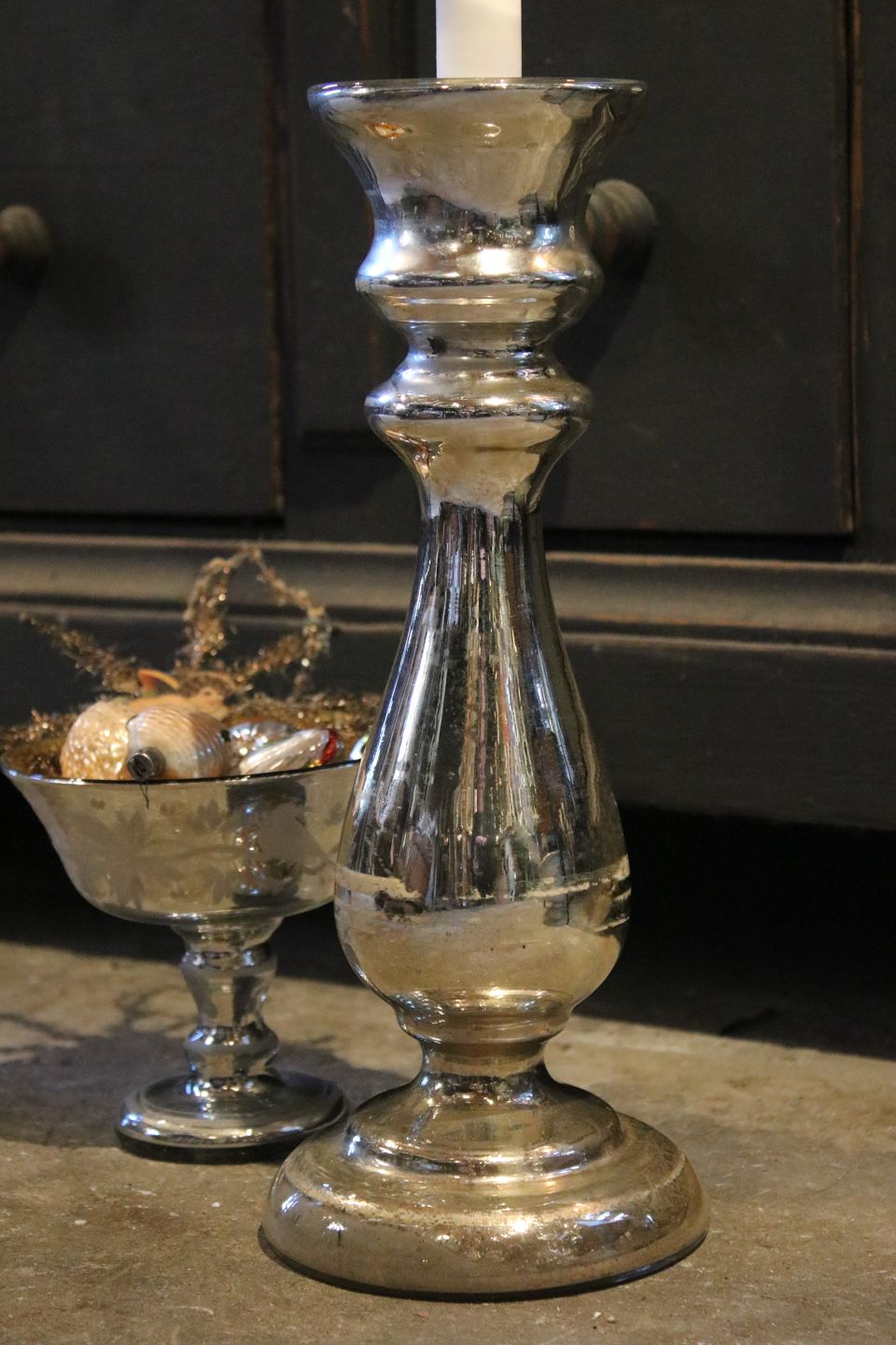 STOR antik fransk 1800 tals lysestage i fattigmandssølv med fin patina. Højde : 32cm. (Mercury silver glass) Emne nummer: Stage nr.10