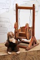 Sød , lille plys abe siddende i gammel træ gynge. Gynge H: 18,5cm. 12x9cm. Abe H: 11cm. Emne nummer: Abe i gynge