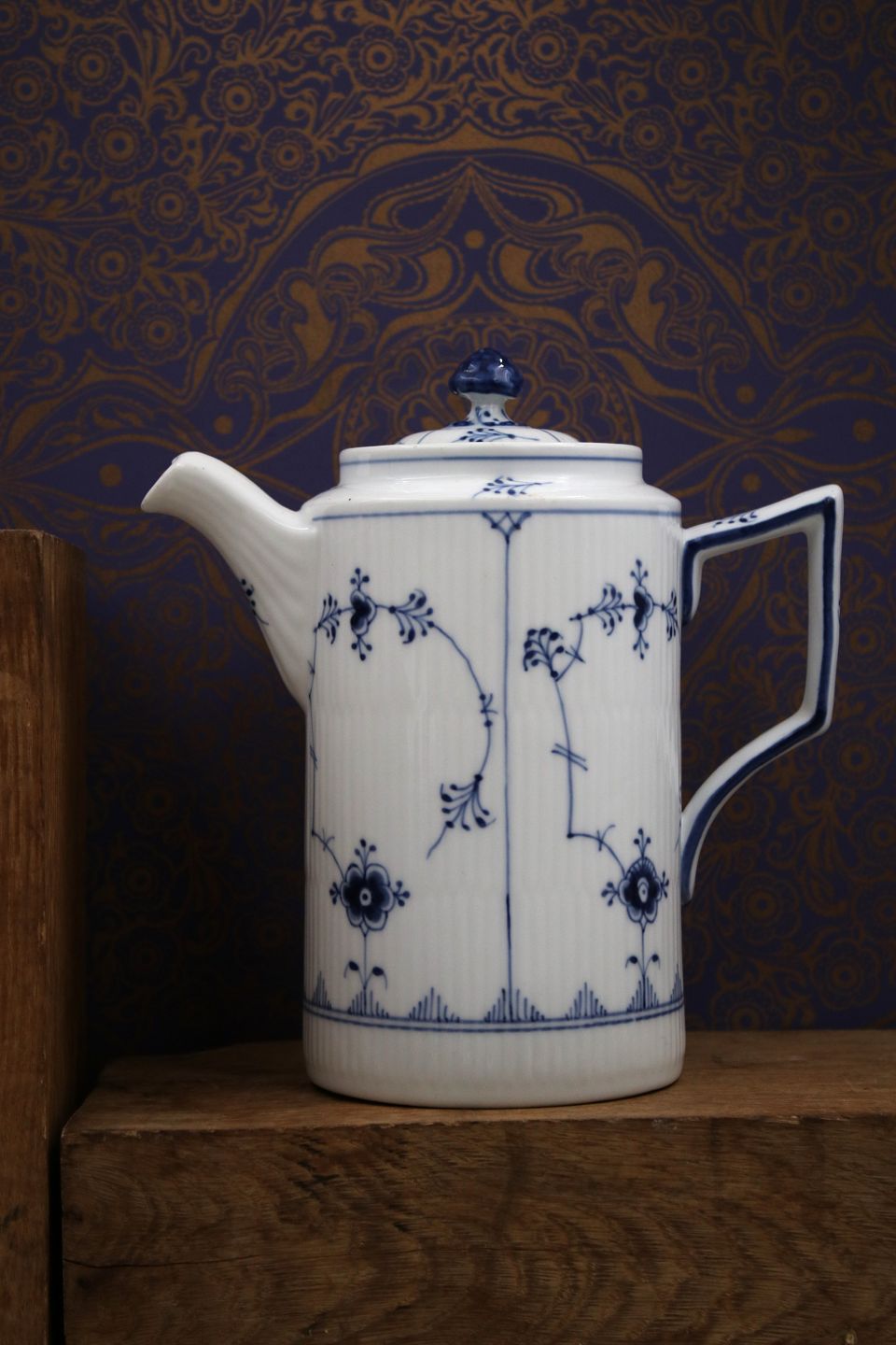 Antique Blue Fluted Plain rare coffee pot from Royal Copenhagen. Decoration number: 1/372. 1.sort. from 1898-1923.
