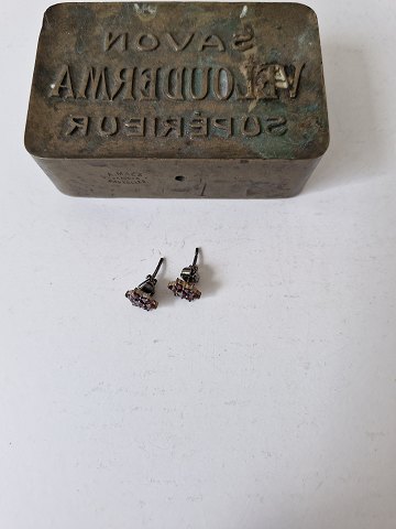 Par vintage stjerneformede øreringe i forgyldt sølv prydet med talrige mørkerøde granater Stemplet: HGR - 830 Diameter på stjernen 10 mm.