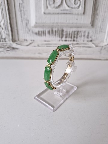 Smukt armbånd i 18 kt guld med jade Stemplet: THC - 75% - armbåndet er testet hos Vitus Guld for lødighed Længde 18 cm. Bredde 7 mm.