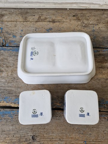 Royal Copenhagen Musselmalet riflet skrivetøj med to blækhuse no. 127