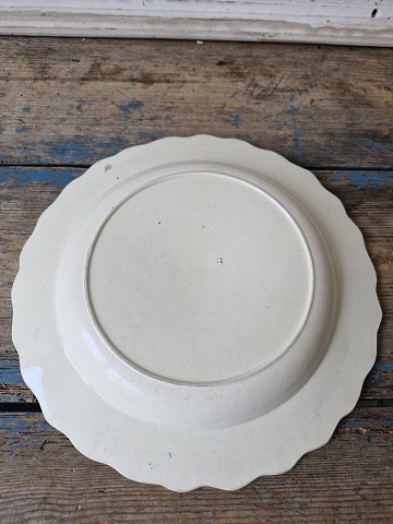 Engelsk Creamware tallerken dekoreret med fjerkant i relief 24,5 cm.