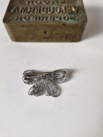 Filigree bow brooch in silver