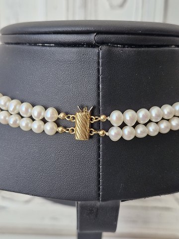 Two-strand cultured pearl necklace with 18 kt gold clasp