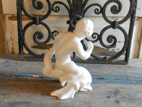 Skøn Blanc de Chine figur af Kai Nielsen, dreng på delfin.